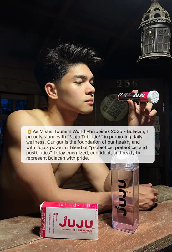 JUJU Tribiotic is your all-in-one gut helper that combines prebiotics, probiotics, and postbiotics for smoother digestion and balanced gut health.