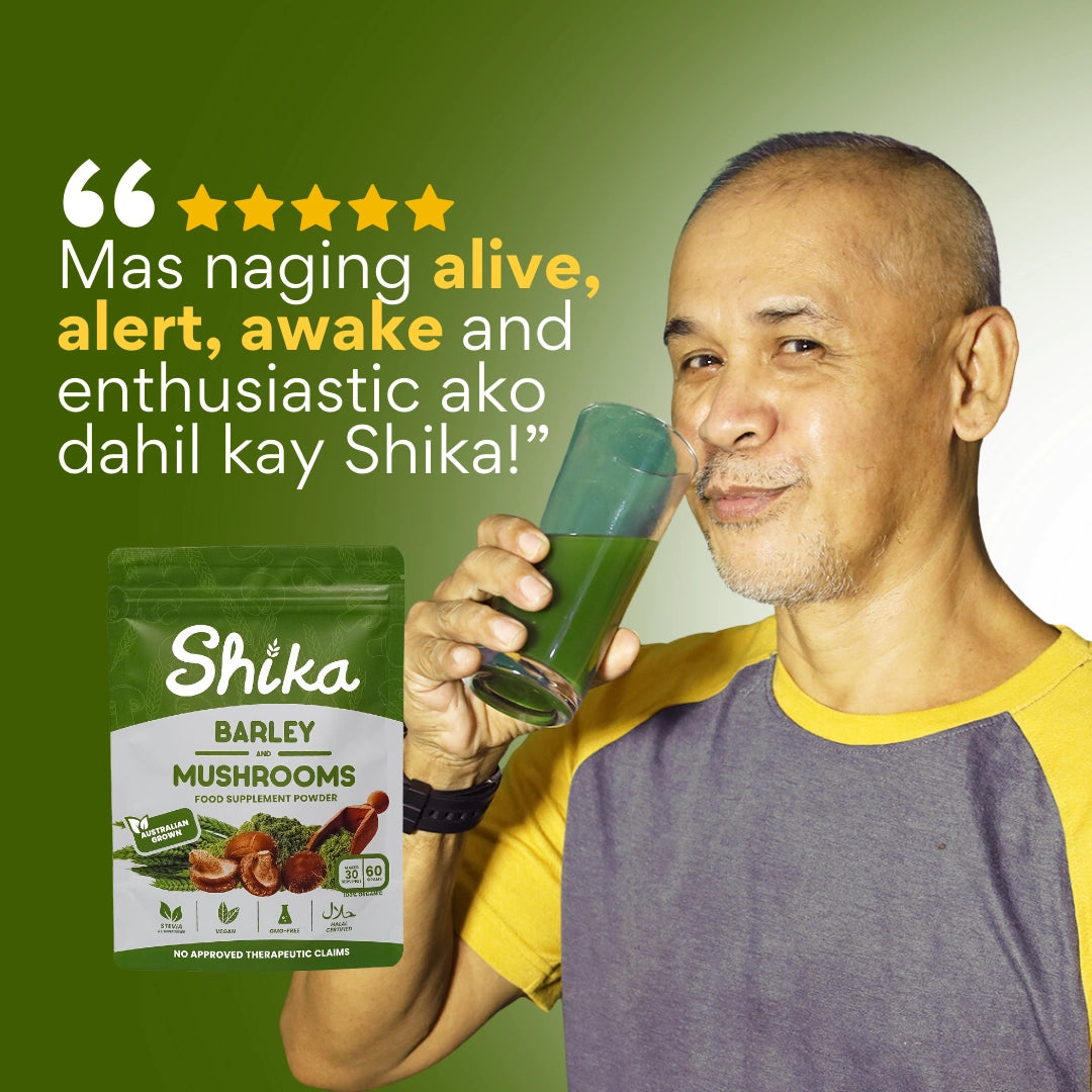 Shika Barley and Mushrooms blends Australian barley grass with 4 powerful mushrooms to support your immunity, heart, brain, digestion, and much more in a tasty, sugar-free drink that’s good for you.